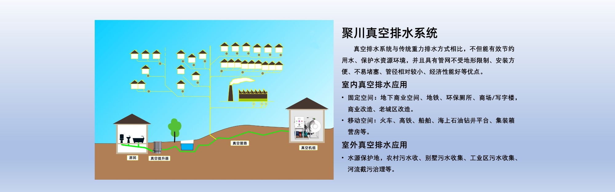 聚川環保成立于2006年8月,總部位于中國浙江杭州,國內新三板上市企業,國家高新技術企業。努力推進真空排水系統在中國的發展和應用,聚川致力于創新型排水設備和系統研發與市場推廣,主要產品有室外真空排水系統、室內真空排水系統、大型建筑真空收集系統、高效節水微型水循環環保廁所系統、真空馬桶、凸輪式密閉泵站系統、低液位氣壓排水系統、負壓垃圾收集系統,城市污水處理裝置等。